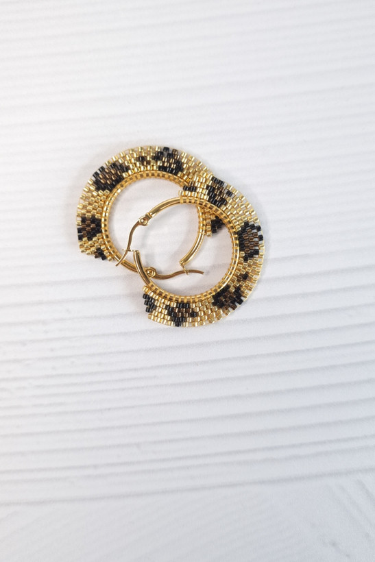 گوشواره حلقه ای طرح پلنگی بافته شده با منجوق های اصل ژاپنی انتخابی زیبا و چشم گیر برای خاص پسندان