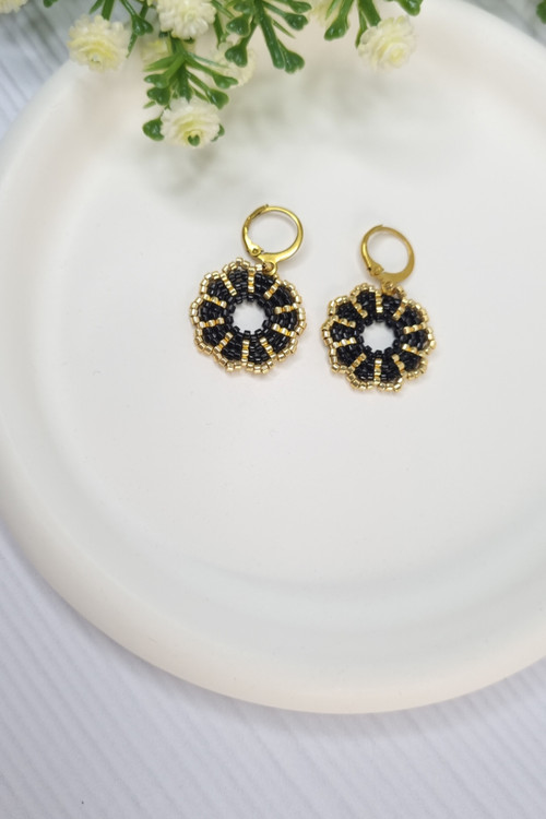گوشواره دست باف طرح گل بافته شده با منجوق های اصل ژاپن انتخابی زیبا و چشم گیر برای خاص پسندان